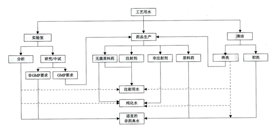 在《美國(guó)藥典》制藥用途水中有專門的論述,并有一個(gè)圖可供參考USP32 1231 Fig. 2 Selection of water for pharmaceutical purposes.