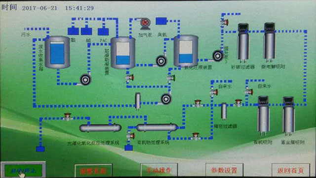 9、PLC可編程序智能控制系統(tǒng)及人機界面操作系統(tǒng):系統(tǒng)的控制采用可編程邏輯控制器(PLC)完成電氣和儀表部分的自動控制與監(jiān)控,LCD液晶顯示中文顯示、開機時設備電控系統(tǒng)自動檢測,全自動處理廢水、針對不同廢水的成分和濃度,控制系統(tǒng)自動進行計算然后按比例進行自動投放藥品,更加科學化和合理化,詳細功能如下: