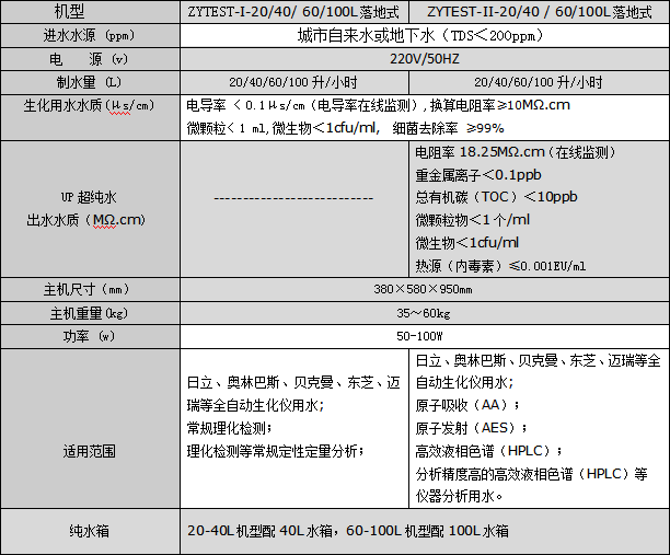 二、生化分析型超純水機(jī)ZYTEST-II-20T產(chǎn)品技術(shù)參數(shù)