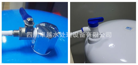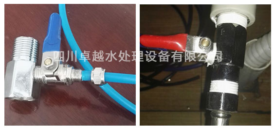 二、在配件箱里找到藍(lán)色PE管,然后與不銹鋼三通接頭連接,并連接自來水。藍(lán)色PE管另一端連接到純水機(jī)源水接口即可。如圖所示: