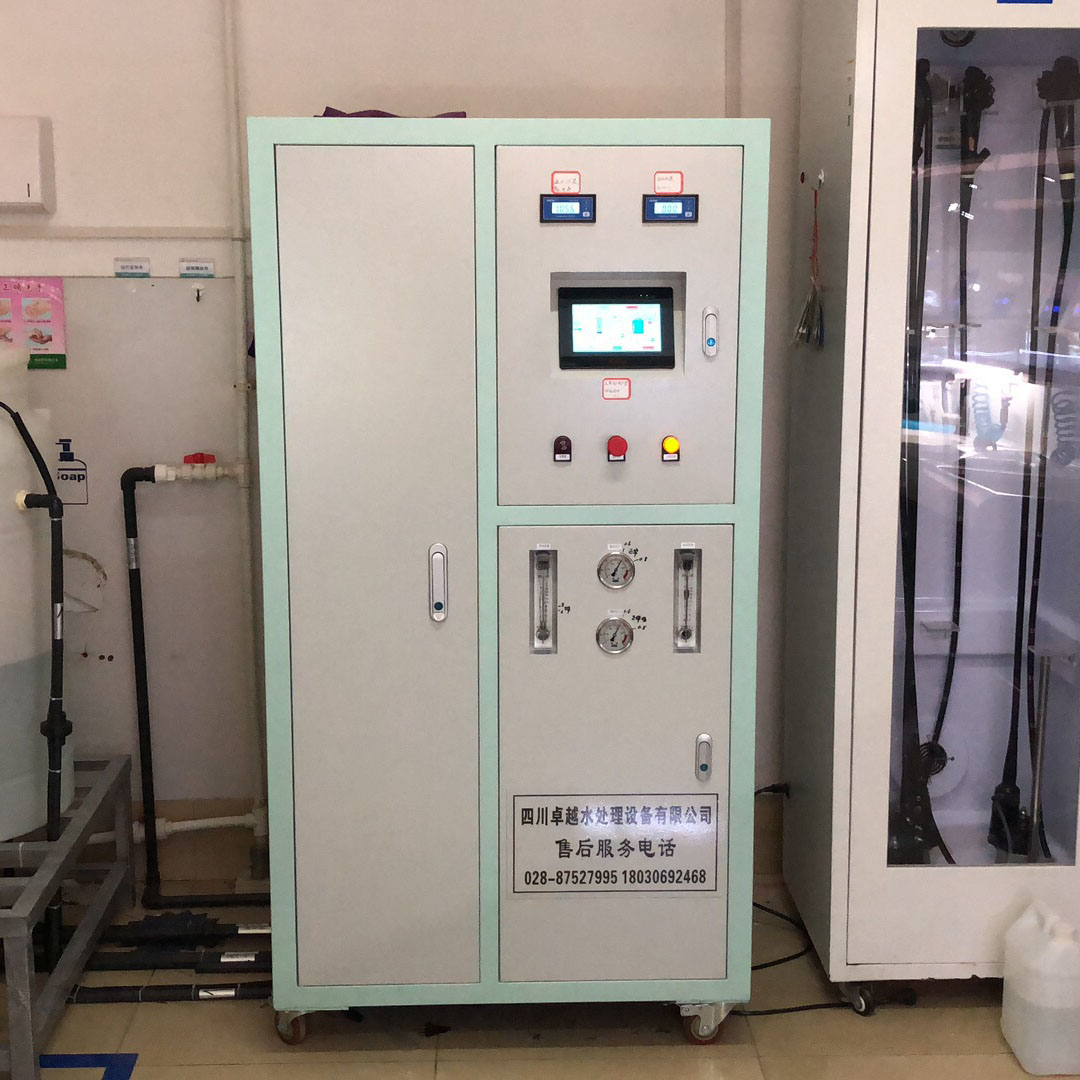ZYNJQX內(nèi)鏡消毒清洗純化水機是一款依據(jù)中華人民共和國衛(wèi)生行業(yè)標(biāo)準(zhǔn) WS507-2016(軟式內(nèi)鏡清洗消毒技術(shù)規(guī)范)要求的,設(shè)計精巧、低能耗、全自動控制無須人照看的消毒清洗純化水制取系統(tǒng)。采用反滲透膜法[RO+滅菌裝置]分離純化、除熱源技術(shù),去除水中污染物質(zhì)和細菌達99.6%。此產(chǎn)品采用納米級的過濾膜孔徑為0.0001um,符合WS507-2016要求使用的濾膜孔徑≤0.2um,并采用雙波長紫外消解儀進行滅菌、臭氧消毒和化學(xué)消毒管路設(shè)計,能為廣大胃鏡科室客戶解決內(nèi)窺鏡消毒清洗用水,細菌總數(shù)<10cfu/100ml。
